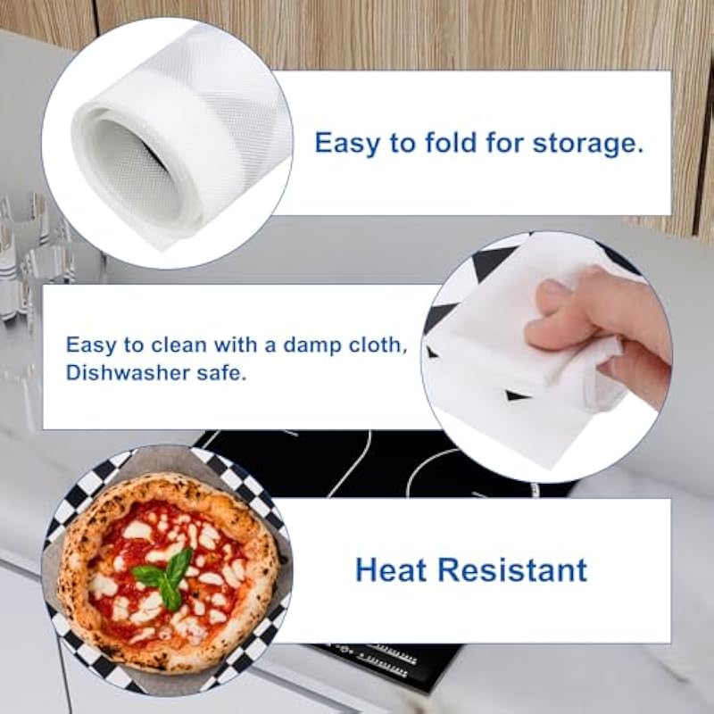 - [Easy To Clean] – The non-slip surface keeps pots and pans from sliding during cooking. Simply wipe it clean with a damp cloth or place it in the dishwasher for easy cleaning. The compact size can be rolled for easy storage.