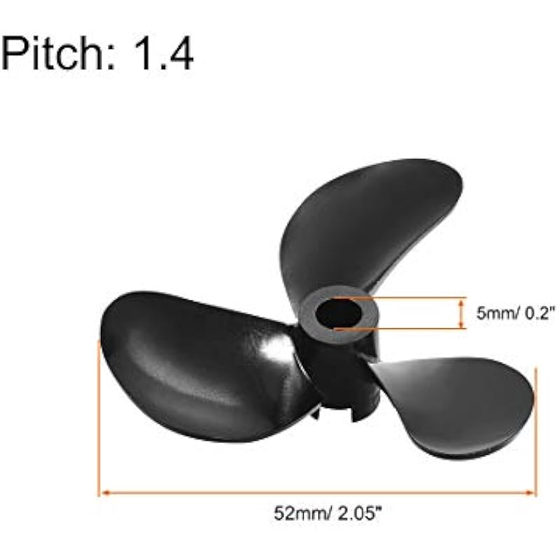 - 【SPECIFICATIONS】- Pitch: 1.4 ; Vane Number: 3 ; Shaft Diameter: 5mm/ 0.2 inch ; Rotating Diameter: 52mm/ 2.05 inch