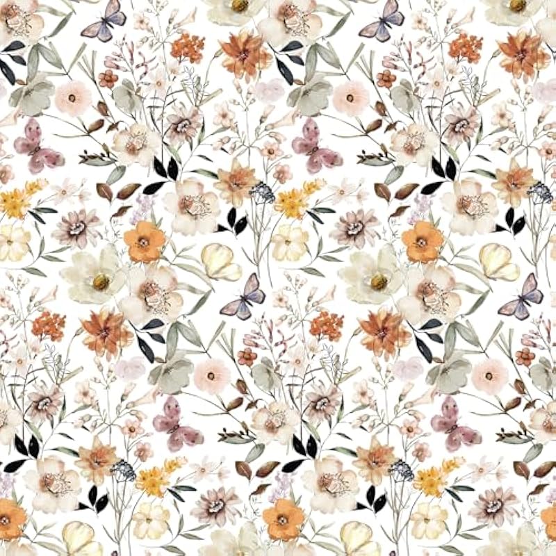 - 𝐏𝐫𝐨𝐝𝐮𝐜𝐭 𝐃𝐞𝐭𝐚𝐢𝐥𝐬: Floral peel and stick wallpaper, delicate butterflies across the meadow flowers, perfect for girls bedroom and nursery. Made of high quality vinyl, thick and durable, tear resistant, 17.7 inch wide by 118 inch long, covers 14.5 sq ft per roll, straight match