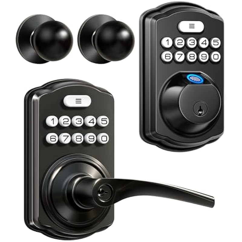 - 4-in-1 Keyless Entry: The keypad door lock with handle supports 21 user codes, one-time code, an interior thumbturn, 2 spare keys for versatile access. Ideal for front doors, bedrooms, garages, and apartments