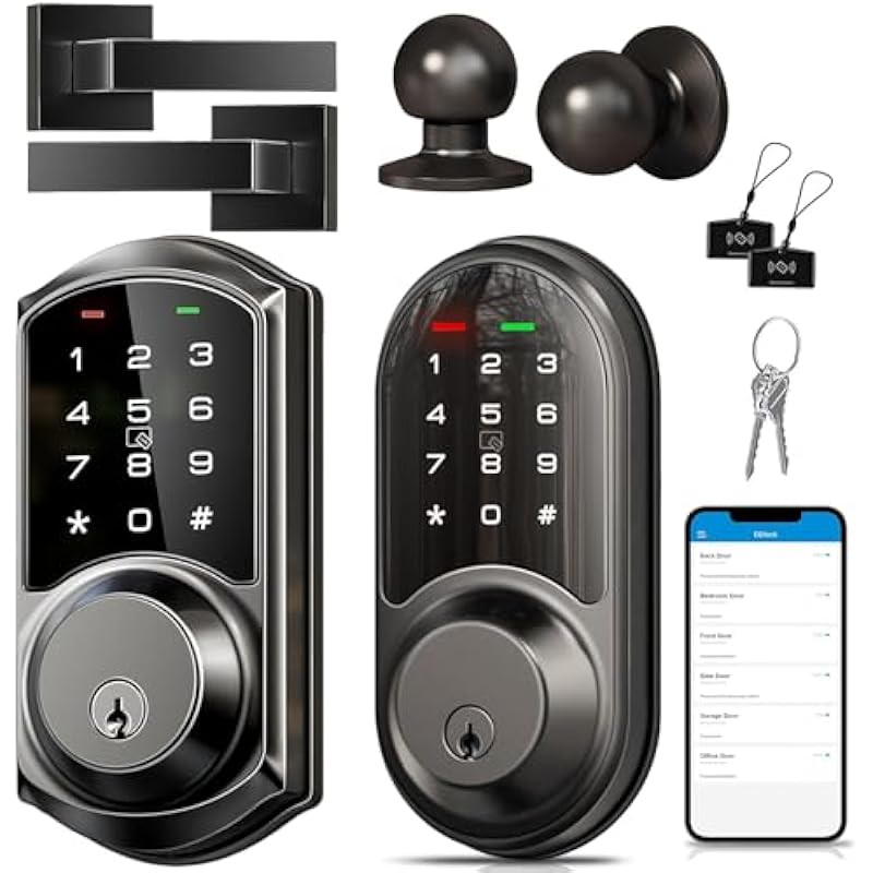 - Keyless Entry Door Lock: Access your smart lock via App + Web portal + Fobs +Code + eKey sharing + Mechanical key