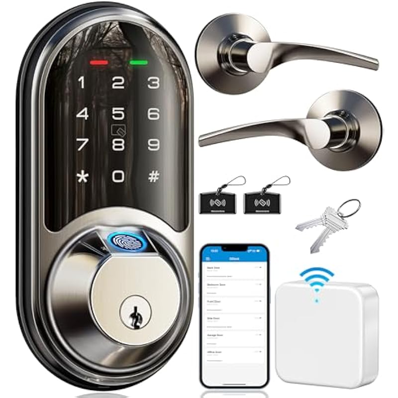 - Access with No Keys: Enjoy keyless entry via App control, fingerprint, passcode, fob, and e-keys. Includes two physical keys. Suitable for various situations and user groups