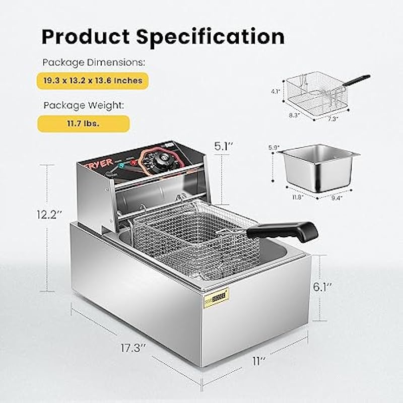 - CONVENIENT AND SAFE – The well-matched lid can prevent hot oil from splashing out and won’t release heavy smoke in the air; The handle of the frying basket can isolate the high temperature during use; The power light and heating indicator light can easily determine if the machine is in use and avoid forgetting to power off after use; A temperature limiter is equipped that automatically shuts down the machine if the temperature rises above 460℉ (240℃), ensuring maximum safety