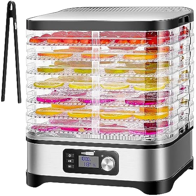 - TIMER & TEMPERATURE ADJUSTABLE – Features adjustable timer and temperature functions; Drying temperature can be set from 95℉-176℉ (35℃-80℃), while the time can be set from 1-48 hours; Choose the optimal time and temperature depending on the ingredients; A hot air fan will automatically switch on and off to balance the temperature; Never worry about making a mess again