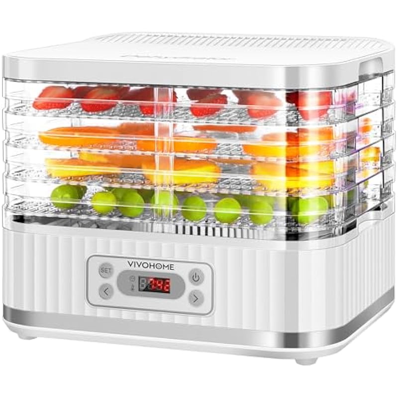 - DIGITAL TEMP & TIME SETTING – Easily set the time and temperature with a digital control panel; You can adjust the temperature from low to high settings (95℉ to 158℉) and set the timer (1-72H) for precise dehydration durations; Choose the optimal time and temperature depending on the ingredients; A hot air fan will automatically switch on and off to balance the temperature; Never worry about making a mess again