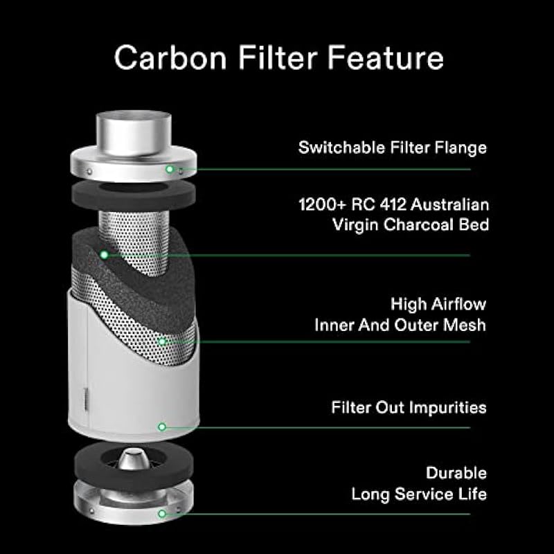 - Unique Design: The dual-sided galvanized steel mesh adopt round hole design, which greatly increases the open area and ensures the max. airflow 223 CFM; The lengthened carbon canister enables a higher filtration rate