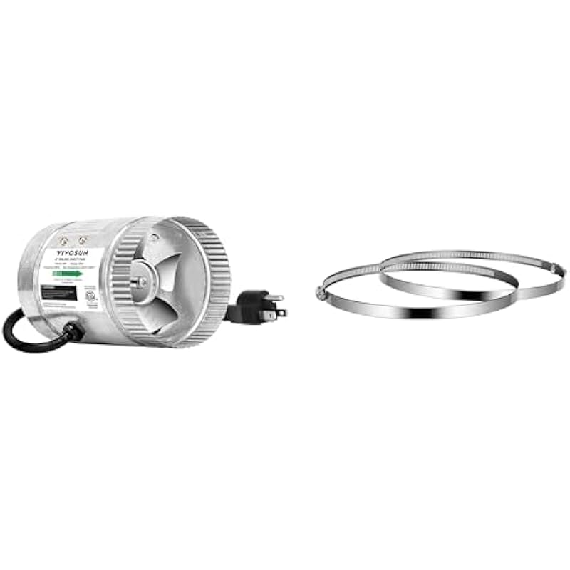 VIVOSUN 4 Inch Inline Duct Fan 100 CFM and Stainless Steel Air Ducting Clamps, 4/6/8/12 Inch Adjustable Hose Clamps with Worm Drive for Ducting, Heating, Cooling, Exhaust, and Ventilation (Pack of 2)