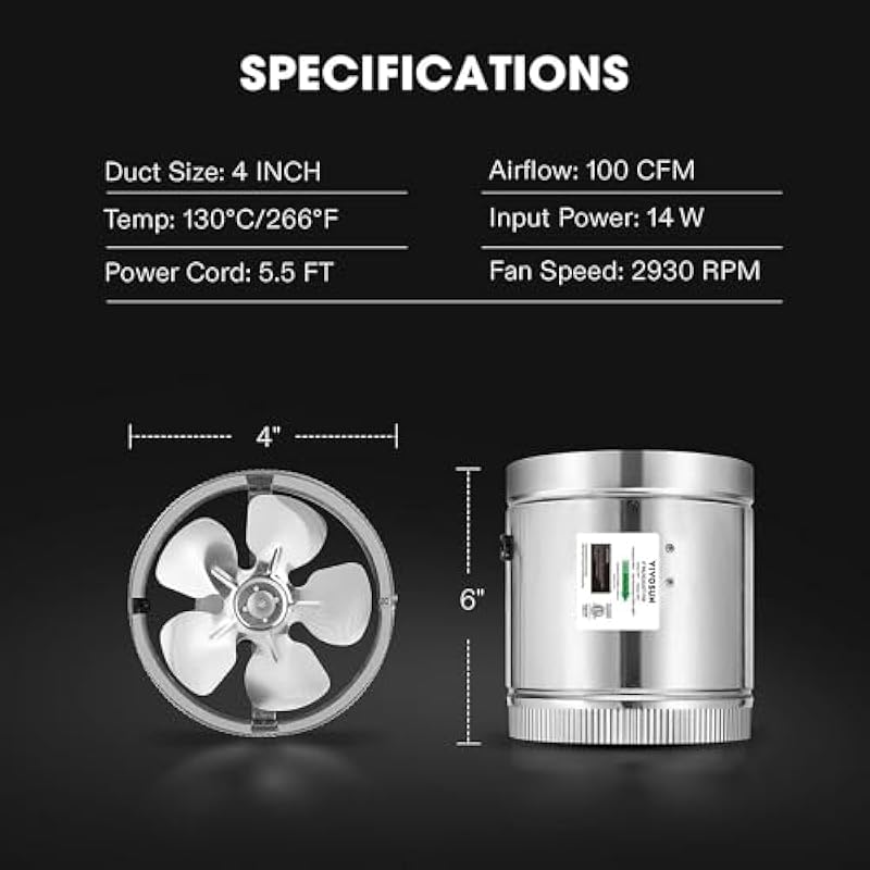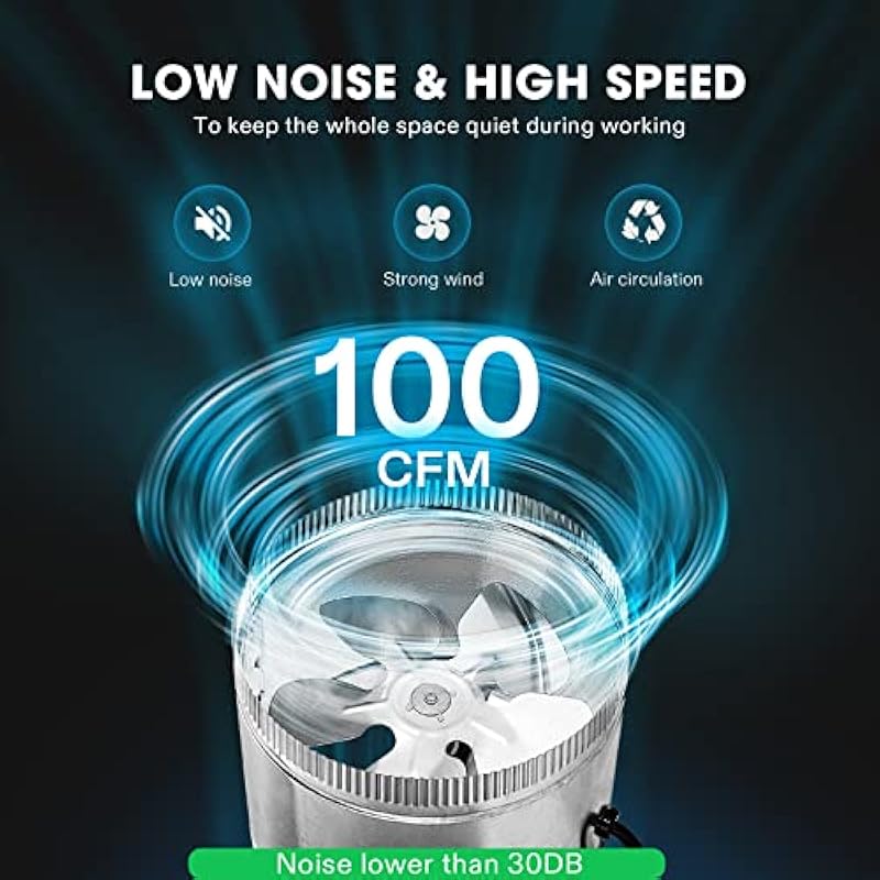 - Compact But Efficient: This duct fan is compact and lightweight enough to be installed in areas with little available space; With a diameter of 4 inches, speed of 2930 RPM and 100 CFM air flow