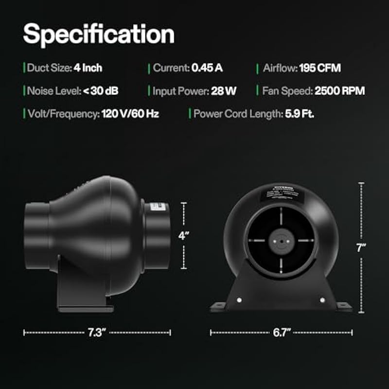 - Effective Ventilation: Powerful blower with a fan speed of 2500 RPM for an air flow of 195 CFM. Moves air through your target location efficiently for optimal ventilation