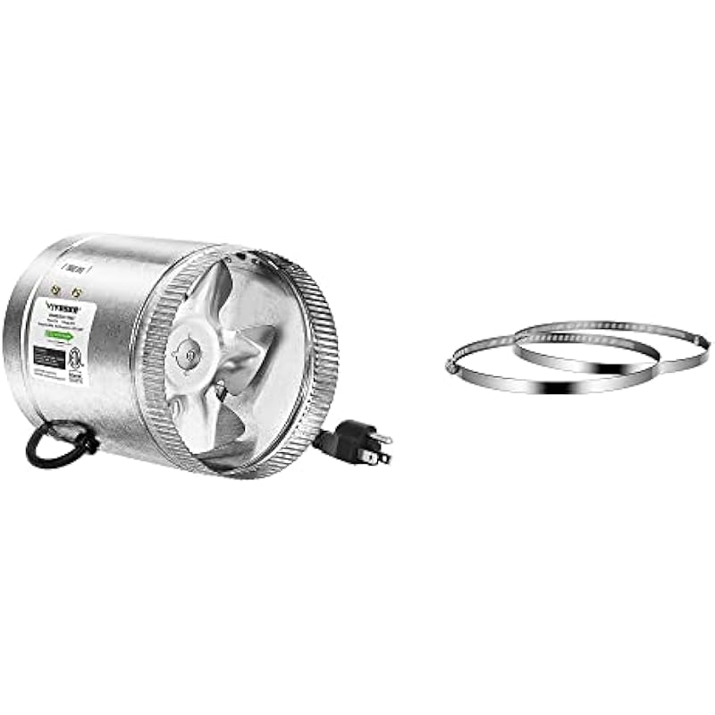 VIVOSUN 6 Inch Inline Duct Fan 240 CFM and Stainless Steel Air Ducting Clamps, 4/6/8/12 Inch Adjustable Hose Clamps with Worm Drive for Ducting, Heating, Cooling, Exhaust