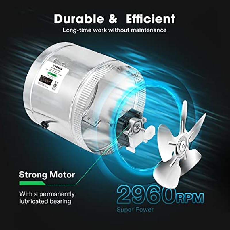- Compact But Efficient: This duct fan is compact and lightweight enough to be installed in areas with little available space; With a diameter of 6 inches, speed of 2960 RPM and 240 CFM air flow