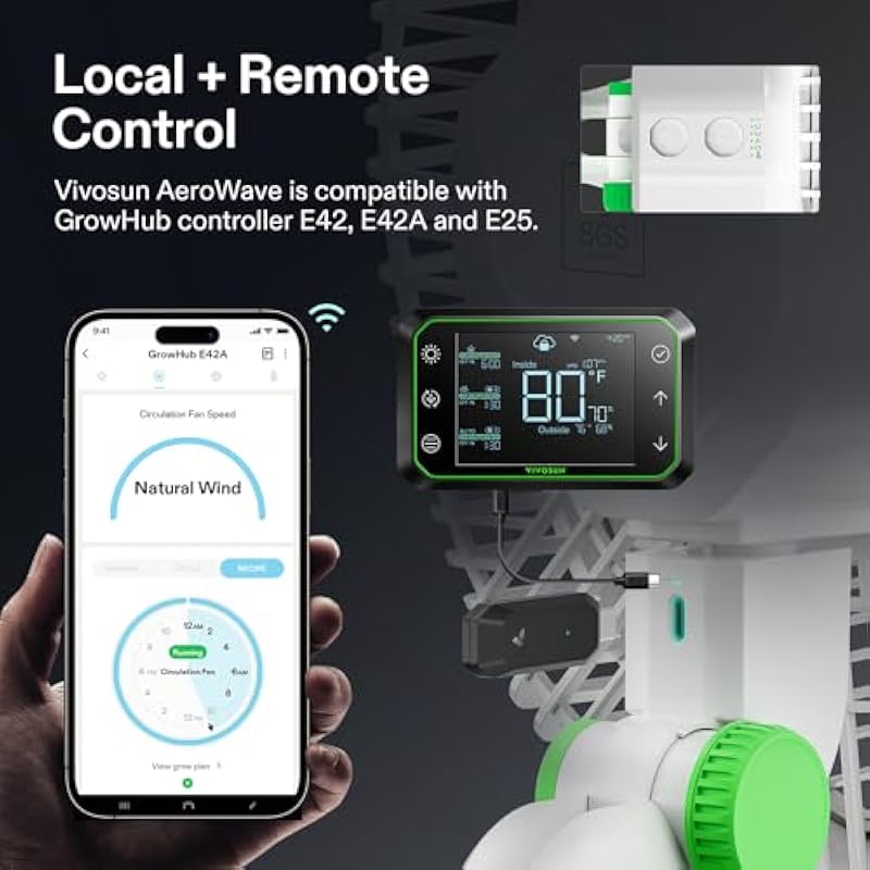 - Smart Wi-Fi Control: Compatible with the Vivosun GrowHub E42/E42A/E25 for remote speed and timer control; Syncs with SGS (Smart Grow System) to apply custom grow recipes and operate in tandem with other connected devices