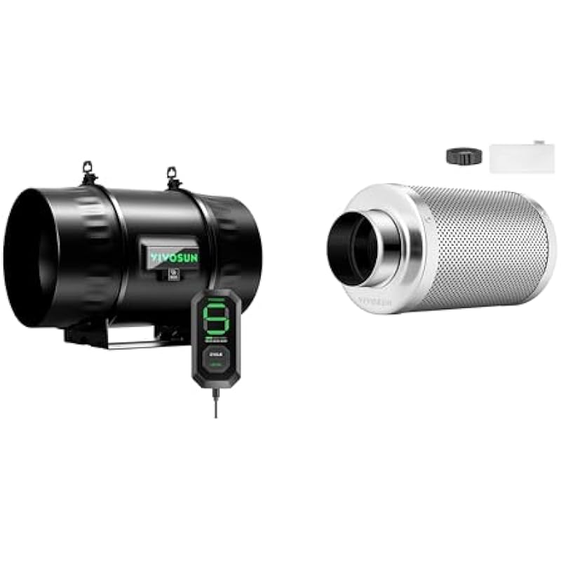 VIVOSUN AeroZesh T8 8-Inch 832 CFM Inline Duct Fan with 10-Speed Controller and 8 Inch Air Carbon Filter Smelliness Control with Australia Virgin Charcoal for Inline Duct Fan, Grow Tent,Pre-Fi