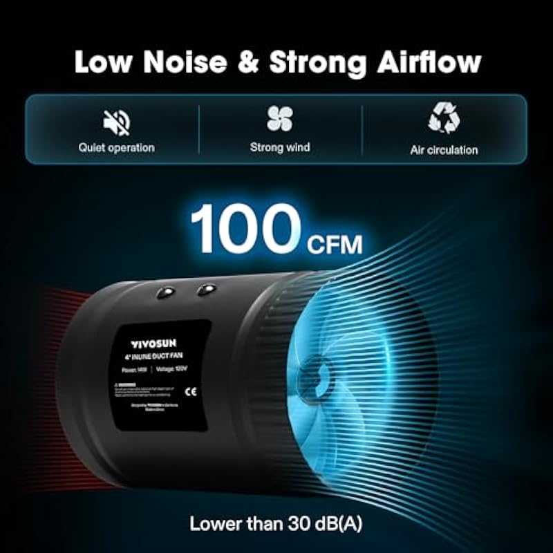 - Compact But Efficient: This duct fan is compact and lightweight enough to be installed in areas with little available space; With a diameter of 4 inches, speed of 2935 RPM and 100 CFM airflow