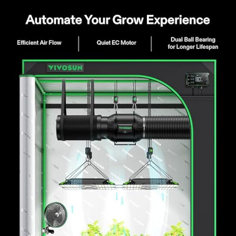 VIVOSUN S538 5×2 Grow Tent and AeroZesh T6 Inline Duct Fan, Quiet 6″ 408 CFM Ventilation Exhaust Fan w/EC Motor and GrowHub E42A Temperature Humidity WiFi-Controller