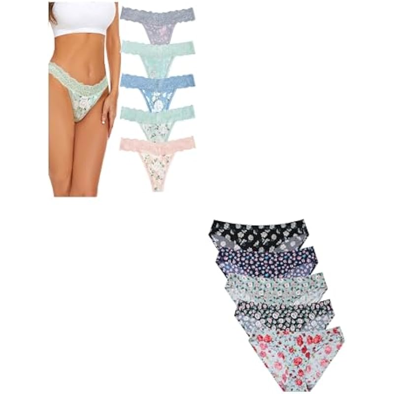 voenxe Women Seamless Lace Thongs 5 Pack and 5 Pack Women Bikini Underwear