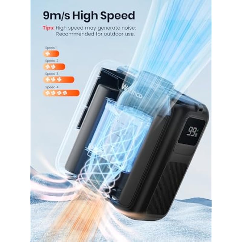 - [Durable and Outdoor-Ready] Made from premium ABS material and featuring an upgraded manganese steel clip, the Warmco waist fan is more durable, slip-resistant, and has a stronger grip. It can be securely attached to belts, making it perfect for high-altitude work, construction sites, and workshops. With an operating noise level of 50-60dB, it’s suitable for outdoor use but may be slightly noisy in quiet indoor settings.