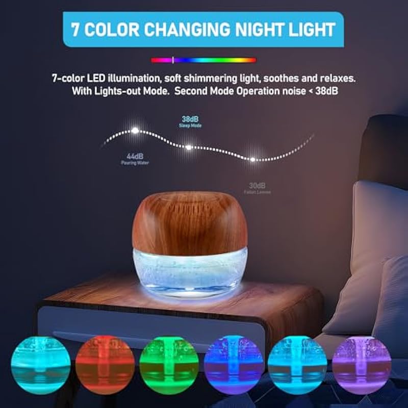 - LED Night Light: With night light design, 7 colors changing mood lights, give you a peaceful of night.