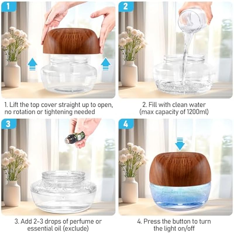 - Material: Made with BPA FREE material, the material just like baby bottle. And you can add a few drops of essential oils into the air purifier, acts as essential oil diffuser.