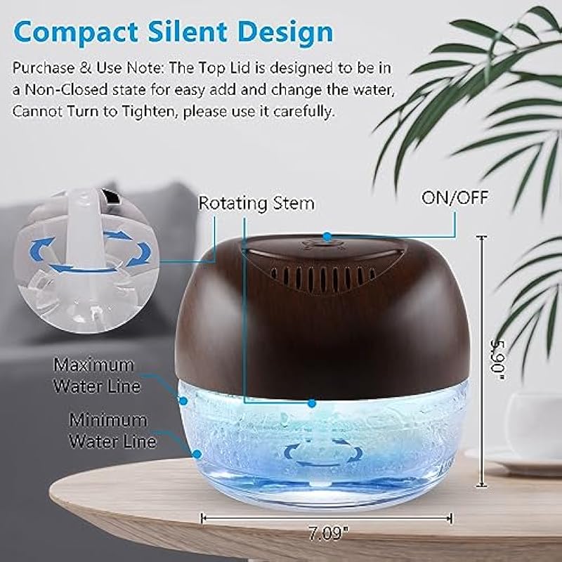 - LED Multi Color Night Light: With night light design, 7 colors changing mood lights, 1st press, power on, 7 led light on, irregular changes. 2nd press, led light off, operating quietly less than 30dB. 3rd press, shut off.