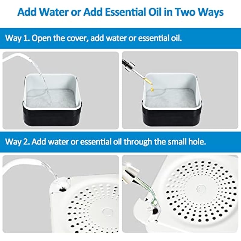 - Material: The top cover and tank housings are made of high-quality ABS. Made with BPA FREE material, can be used with confidence. And you can add a few drops of essential oils into the air purifier, turn stale, dirty air into fresh scented air. Easy to Clean: 1300ml capacity, just need to clean the bottle every day