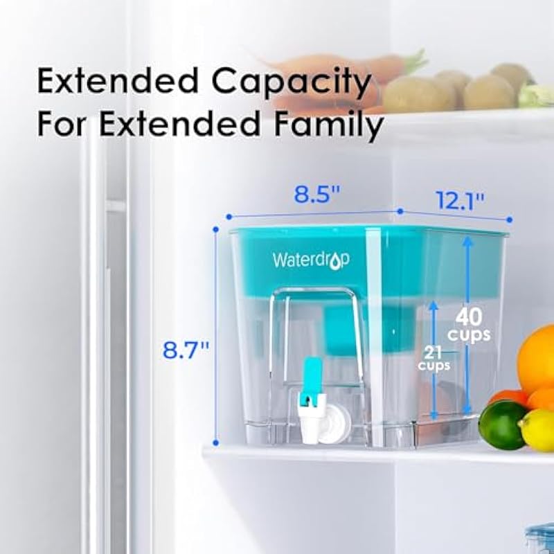 - Fashionable And Large Capacity, Good Gift for Day: This water filter dispenser adopts a fashion and streamlined design. It can slot conveniently into the refrigerator to save space. The large capacity with 40-cup (21 cups in the body) also meets the needs of many people effectively. Drink more water everyday with Waterdrop. 3-pack replacement filters are available for purchase! (search model: WD-PF-01A Plus、WD-PF-01C Plus).