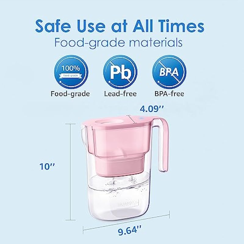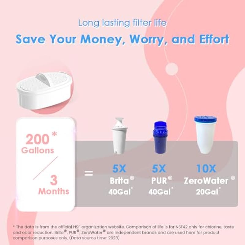- Waterdrop 200-Gallon Long-Life Elfin 7-Cup Water Filter Pitcher with 3 Replacement Filter, NSF Certified, Reduces Chlorine, BPA Free, Pink