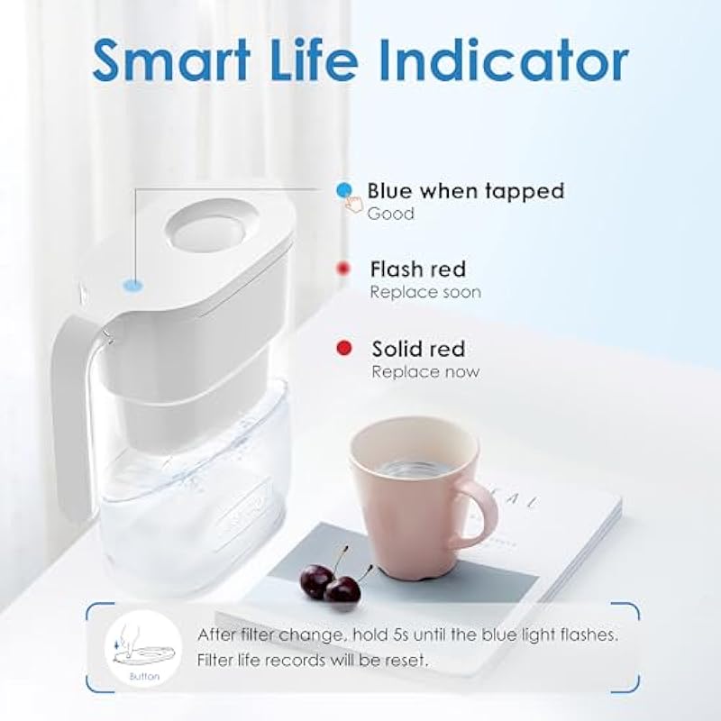 - [Dedicated filtration performance]: Using multi-stage water filter technology, this water filter pitcher can effectively reduce chlorine, PFOA/PFOS, odor, iron, and metal ions, tested by a third lab. The main purpose of the Waterdrop pitcher is not TDS reduction.