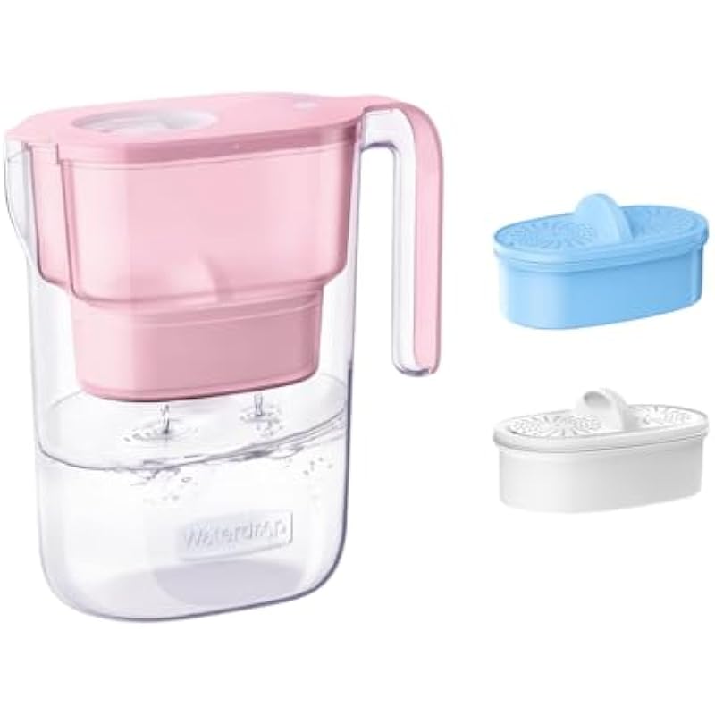Waterdrop 200-Gallon Long-Life Water Filter Pitcher, NSF Certified Water Purifier, Reduces PFOA/PFOS, Chlorine, 7-Cup, Pink, with 1 Filter and 1 Alkaline Filter