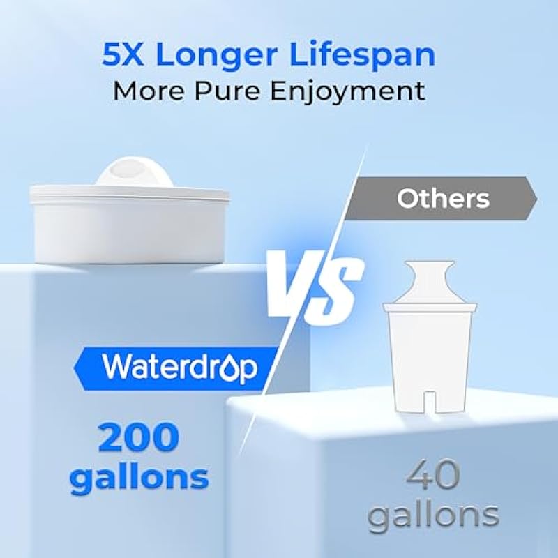 - [Lasts Longer, Enjoy More] Our advanced filter works for up to 2 months or 200 gallons, lasting 5X longer than ordinary filters. Enjoy pure water longer and save over 1,500 plastic bottles, contributing to environmental protection.
