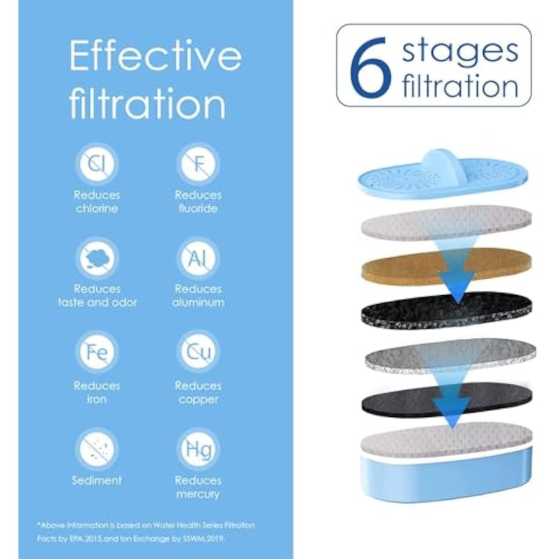 - Effective filtration: Using 6-stage water filter technology, Waterdrop water filter pitcher tests water to eliminate as many impurities as possible. It can reduce fluoride, chlorine, taste and odor, and heavy metals such as aluminum, iron, copper, and mercury, tested by a third lab. At the same time, it adds zinc, calcium, magnesium, selenium, lithium, iodine, and other minerals and trace elements to your water. Drink more water every day with Waterdrop.