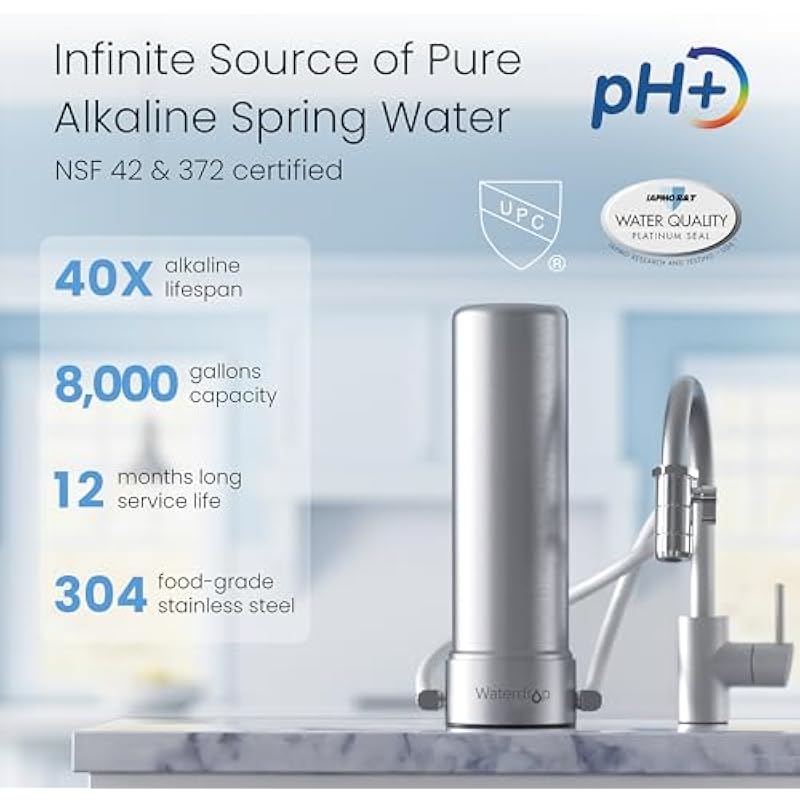 Waterdrop Alkaline Countertop Water Filter, 12 Months or 8,000 Gallons Long-Life, NSF/ANSI 42&372 Certified, Reduces Heavy Metals, Bad Odor and 99% Chlorine,WD-CTF-04(1 Filter Included)