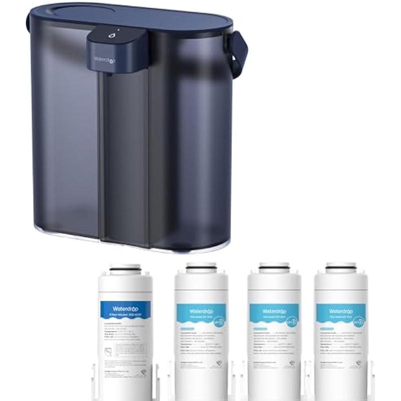 Waterdrop Compact Electric Water Filter Pitcher, Dispenser, 200-Gallon, 5X Times Long-Life Water Filter for Fridge, Reduce PFAS, Chlorine, Lead, 14-Cup, Blue, with 1 Filter & 3 Alkaline Filters