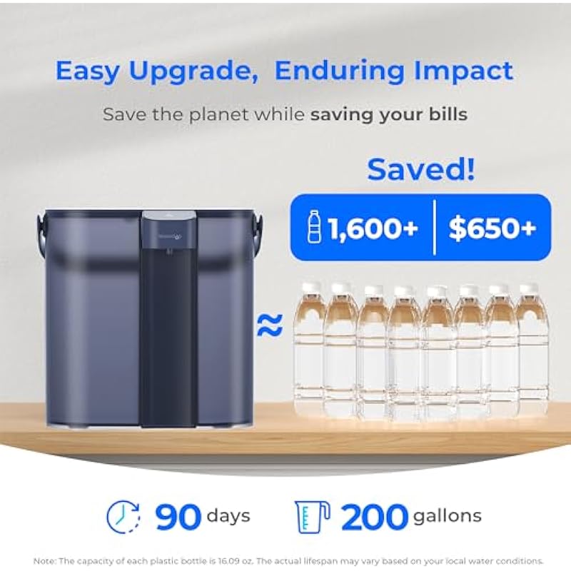 - [Extended Filter Lifespan, More Refreshing Moments] Experience lasting effectiveness with a filter designed to endure 200 gallons or 3 months, adjusting to your local water conditions or usage patterns. This extended lifespan guarantees more revitalizing moments, delivering consistently pure water whenever you require it.
