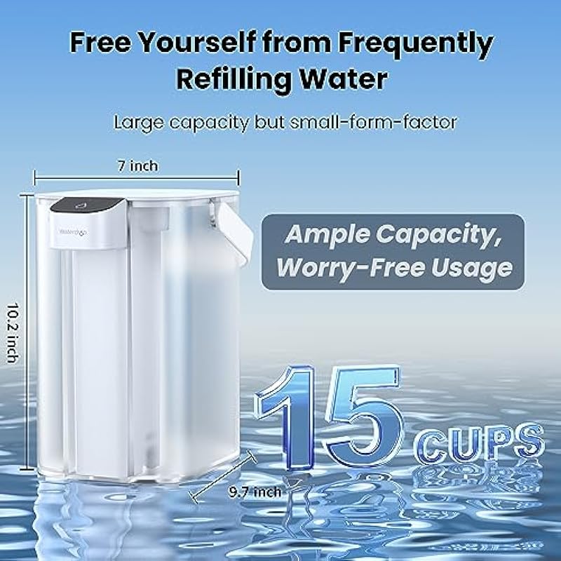 Waterdrop Electric Water Filter Pitcher, Rechargeable Water Dispenser, Instant 15-Cup Countertop Purifier, NSF/ANSI 401&53&42&372, Reduce PFAS, Lead, Chlorine, White, with 1 Filter, Does not Lower TDS