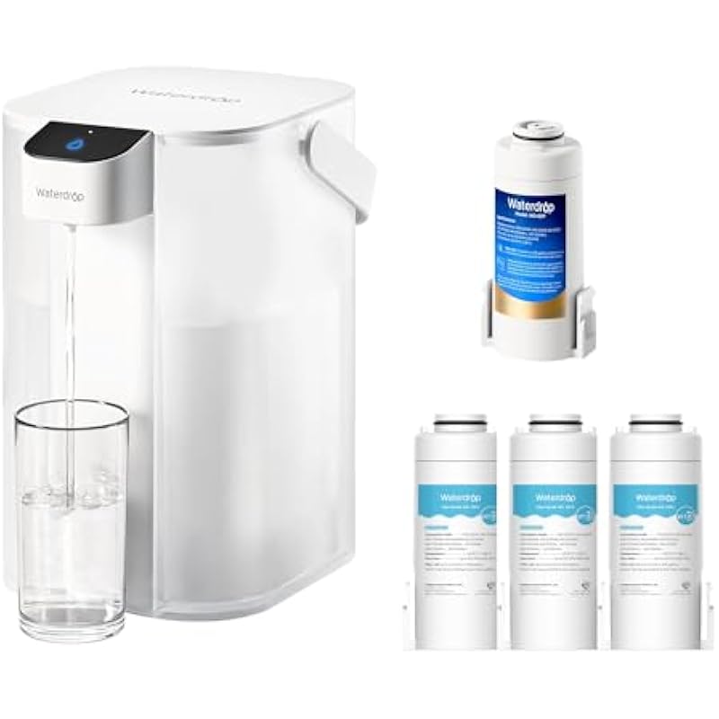 Waterdrop Rechargeable Electric Water Filter Pitcher, Instant Powerful Upgrade Countertop Water Dispenser &WD-EDFA Alkaline Filters Replacement for Waterdrop Electric Pitcher