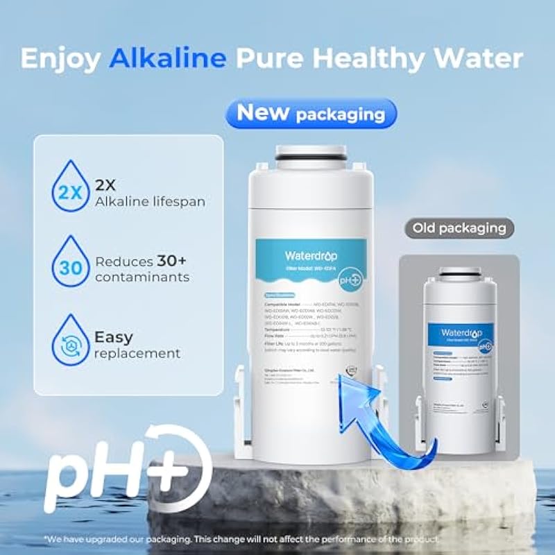 - 【Enjoy Alkaline Pure Healthy Water】Waterdrop alkaline filter replacement has a 2X longer alkaline slow-release lifespan for long-lasting pH balancing of water, with an increase in initial pH of 1.5-2.5.