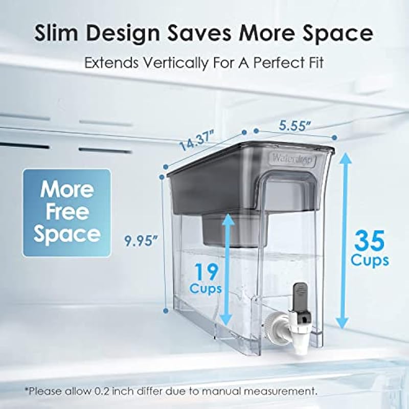Waterdrop Slim Water Filter Dispenser, Large 35-Cup, 200-Gallon Long-Life, 5X Times Lifetime, Reduces Chlorine and More, BPA Free, Black (2 Filter Included)