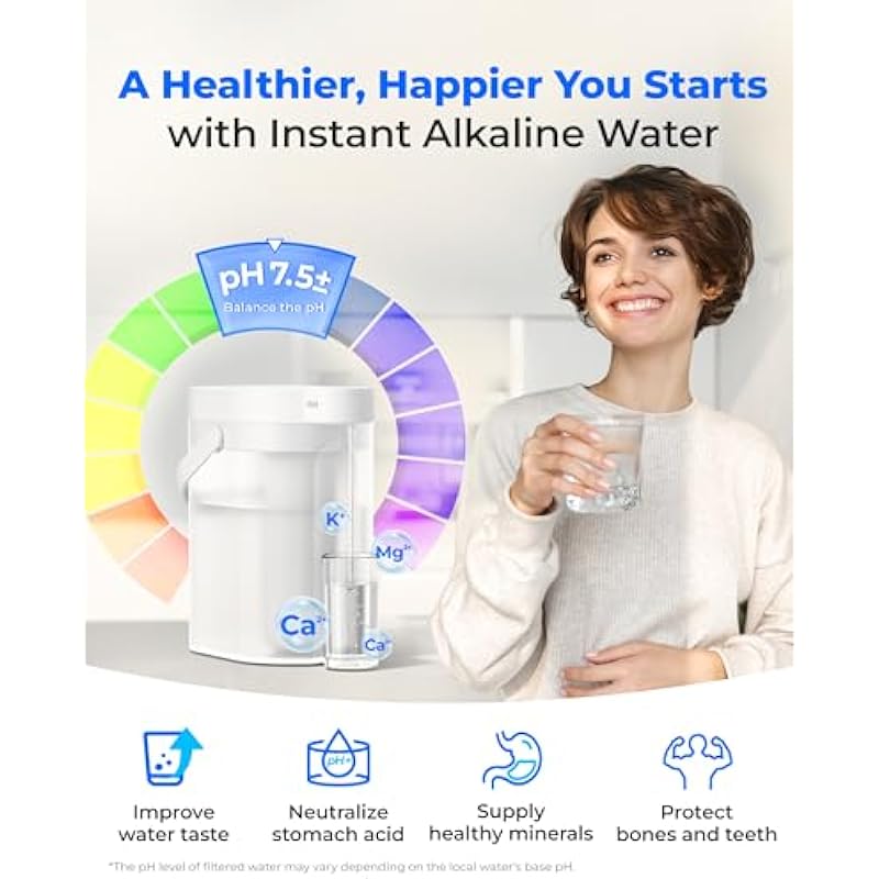 - Healthier Alkaline Water: Our rechargeable water filter dispenser with a replaceable filter instantly alkalizes your water, enhancing taste and adding essential minerals. It helps neutralize stomach acid while supporting stronger bones and teeth with every sip.