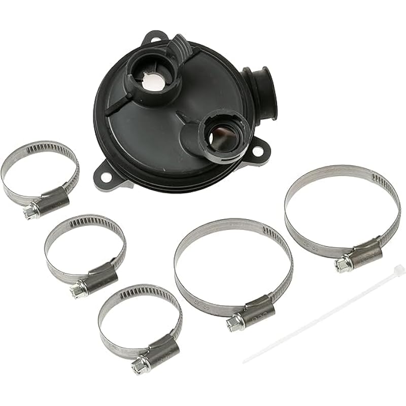 - Color: Black; Material: Plastic; Suitable for 17mm Drain Outlet Hole.; Diameter (Connecting Hose Size):18mm/0.71"; Connector Size: 62x41mm / 2.4x1.6Inch (L*W); Packing List: 4 x Hose Connector, 4 x Clamp