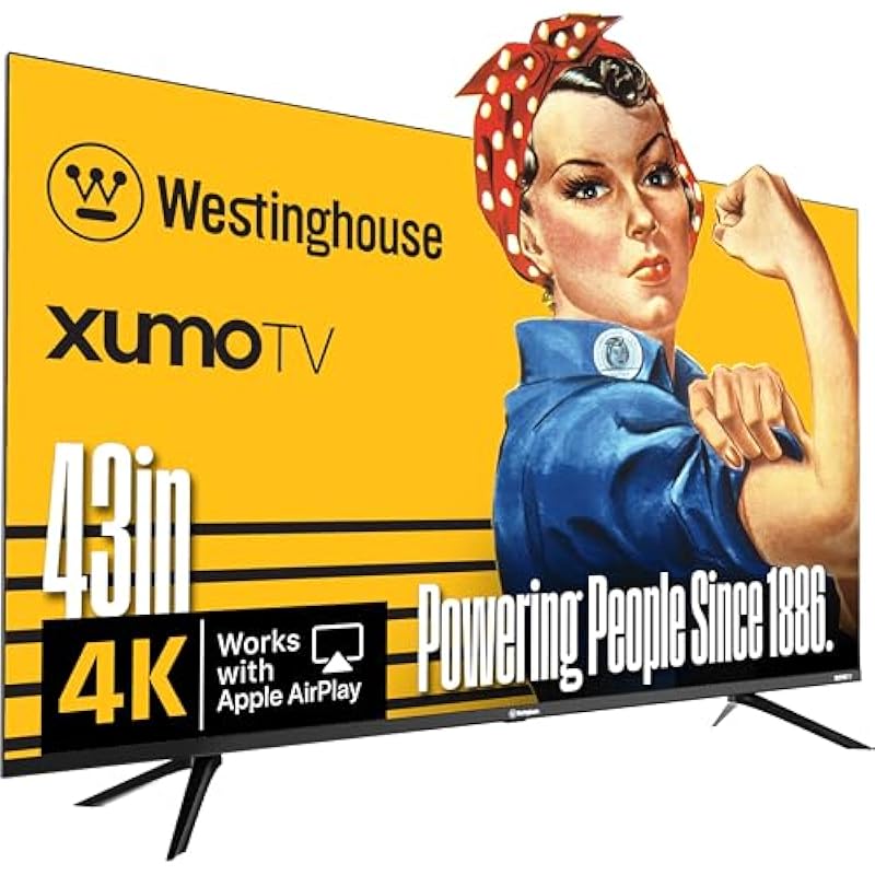 Westinghouse 43-inch Smart TV, 4K UHD Xumo TV w/ HDR10, Voice Remote, Dolby Vision, Dolby Atmos, Edgeless, Flat Screen LED Television w/Bluetooth, Apple AirPlay, Wi-Fi & Mobile Connectivity