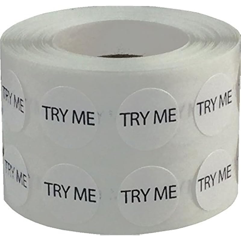 White Try Me Stickers, 1/2 Inch Round, 1000 Labels on a Roll
