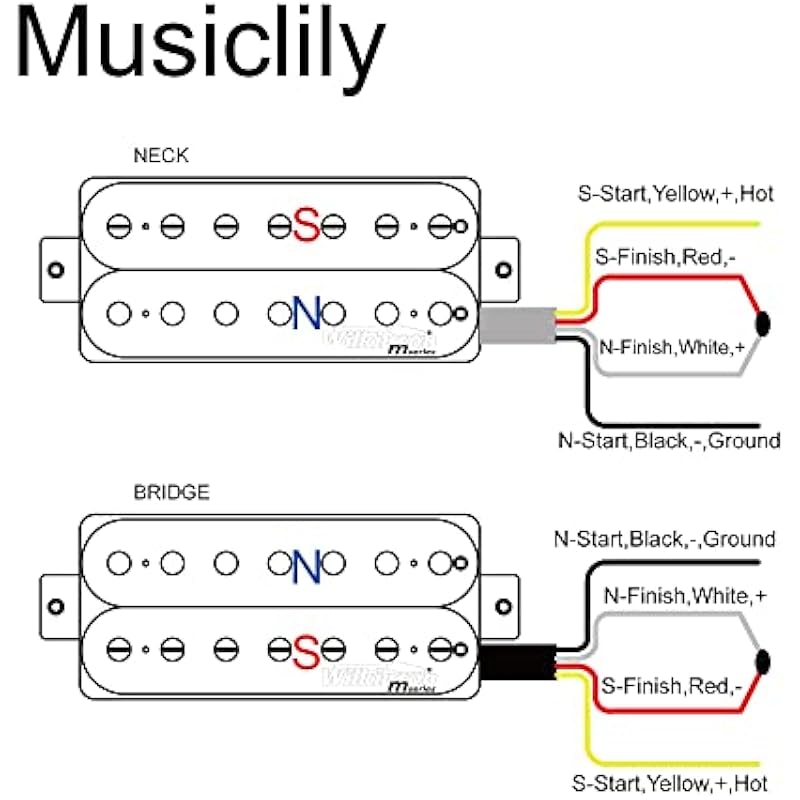 - Magnet: Ceramic, Resistance: Neck 9.75~10.25K, Bridge 19.15~20.15K. Black wire is ground, white wire is hot, 4 conductors, can be split coil