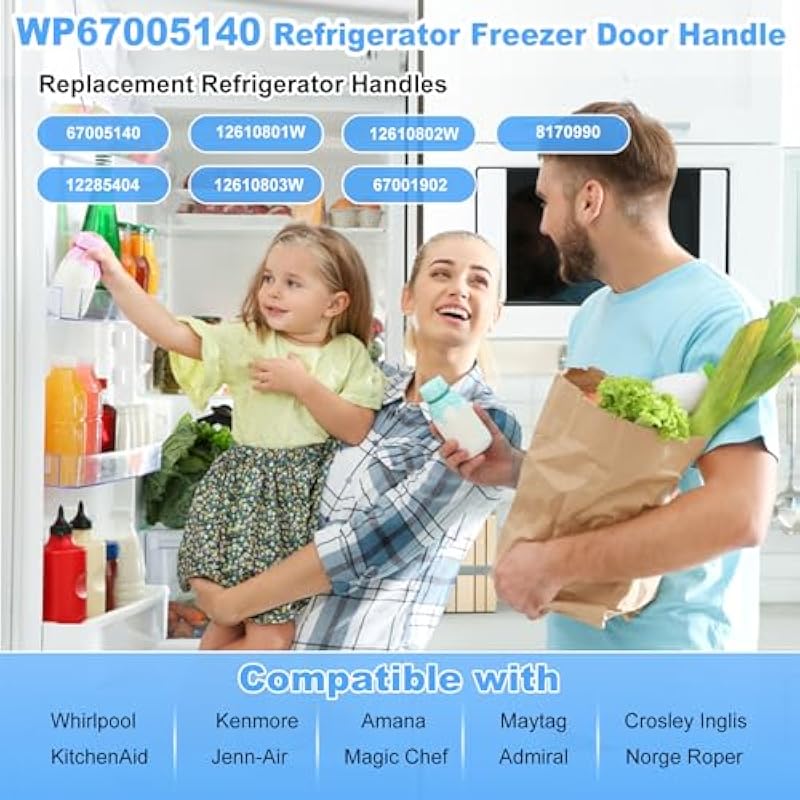 - 【Replacement Solution】 The WP67005140 refrigerator freezer door handle is designed to solve common issues such as broken, loose, or detached handles, ensuring your freezer door operates smoothly.