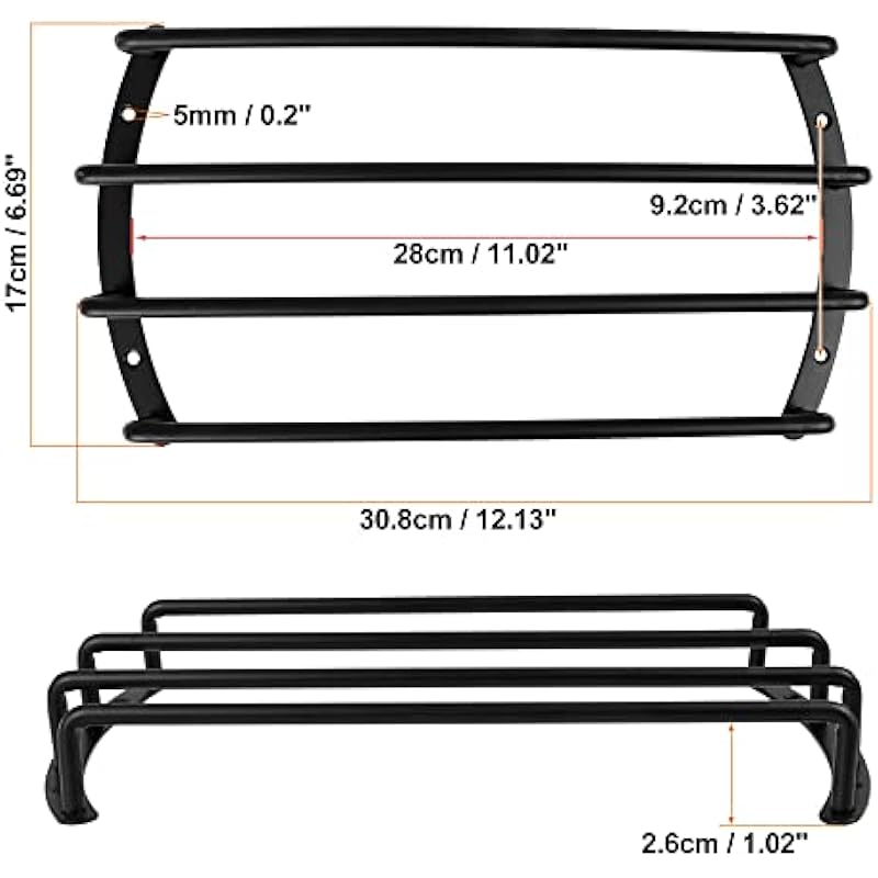 - Dimension: Mounting hole distance: 3.64”-4”, wide on the inner section: 11.02”, wide on the outer section: 12.13”, space between bars: 1.6”.