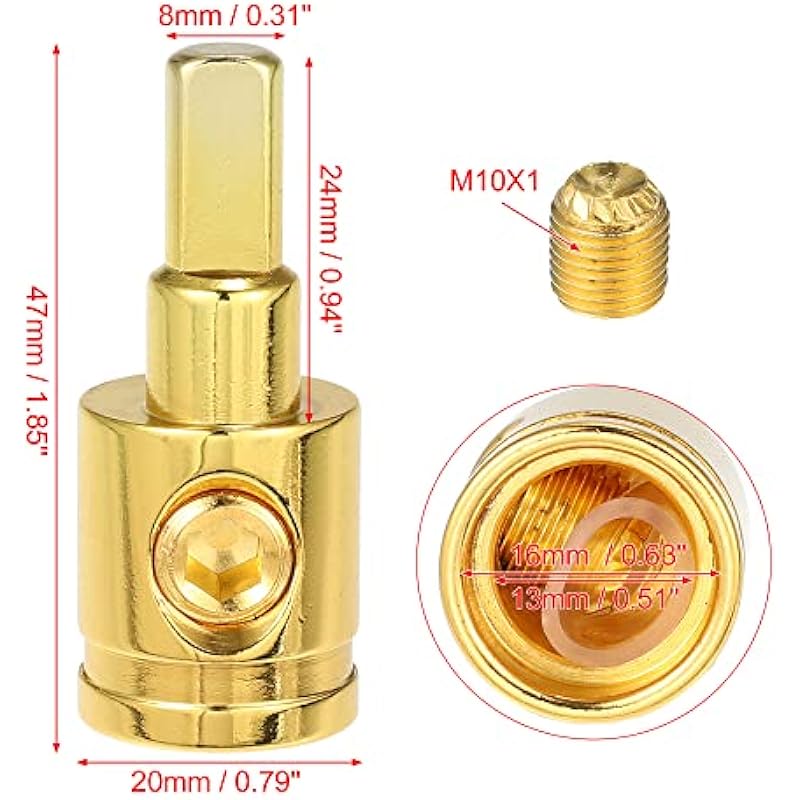X AUTOHAUX 4pcs Amp Input Reducer Copper 0 Gauge Car Stereo Audio AWG Pin Power Ground Wire Reducer Gold Tone
