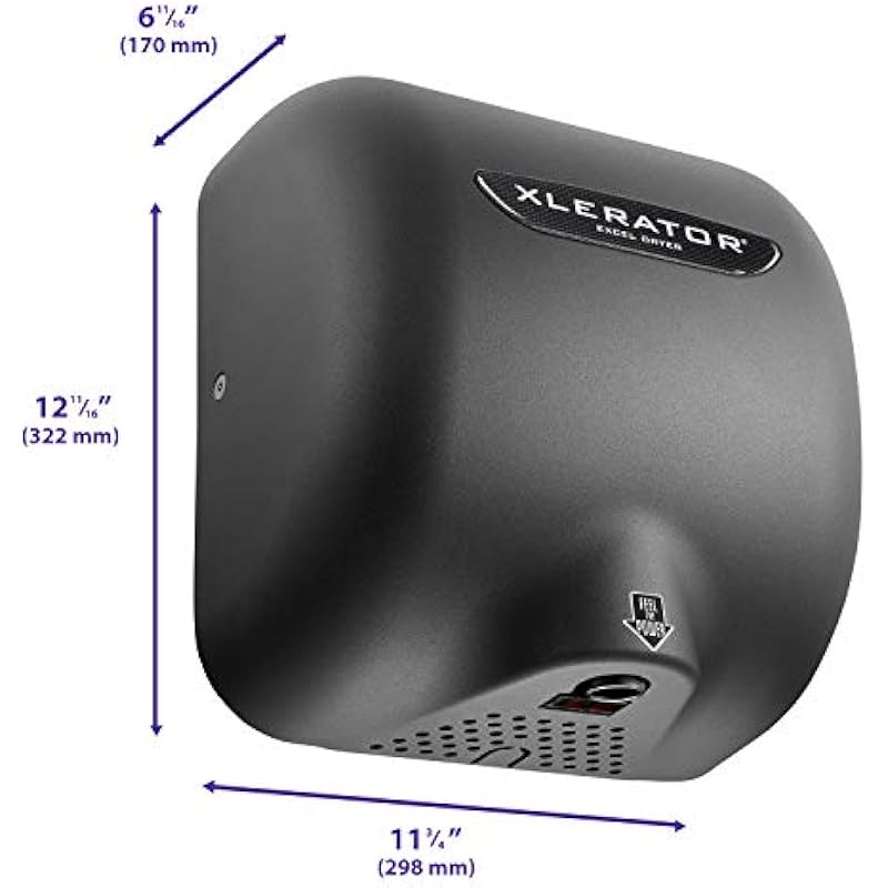 XLERATOR Hand Dryer, Excel Dryer XL-GR-1.1N Hand Dryer, Automatic, Surface-Mounted, Cast Cover, Textured Graphite Paint, 110-120V with Noise Reduction Nozzle