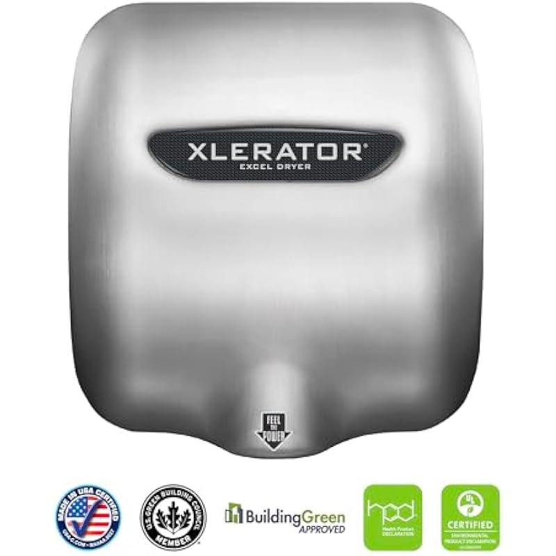 XLERATOR Hand Dryer, Excel Dryer, XL-SB-110-120V, Automatic, Surface-Mounted, Brushed Stainless Steel Cover, 110-120V Standard Nozzle