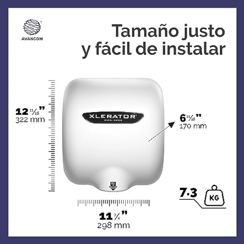 XLERATOR XL-BW Automatic High Speed Hand Dryer with White Thermoset (BMC)Cover and 1.1 Noise Reduction Nozzle, 12.5 A, 110/120 V