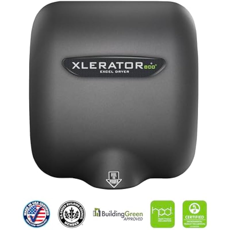 XLERATOReco XL-GR-ECO Hand Dryer, Excel Dryer, Automatic, Surface-Mounted, Cast Cover, Textured Graphite Epoxy Paint, 208-277 Volt Standard Nozzle